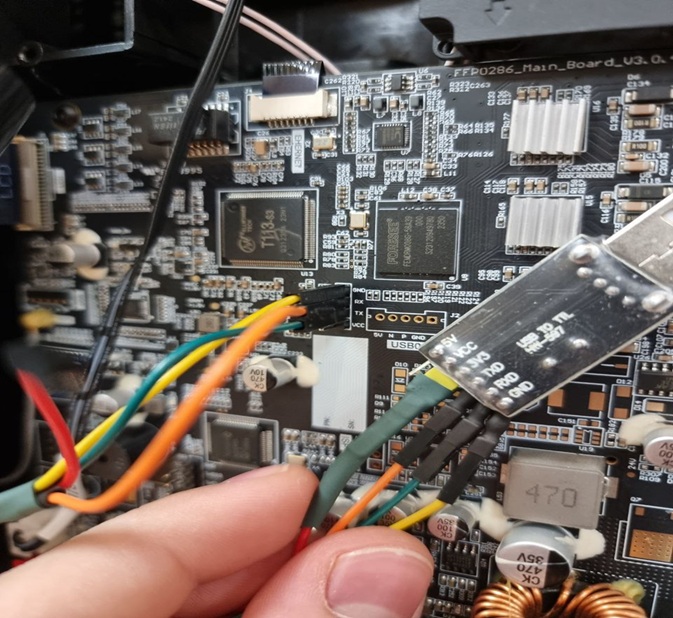 - Connect to the UART pins (RX, TX, GND — do NOT connect 3.3V).